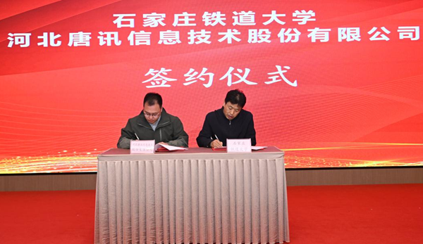 会上,石家庄铁道大学分别与河北唐讯信息技术股份有限公司、石家庄金必德装备制造有限公司达成项目合作并完成签约。